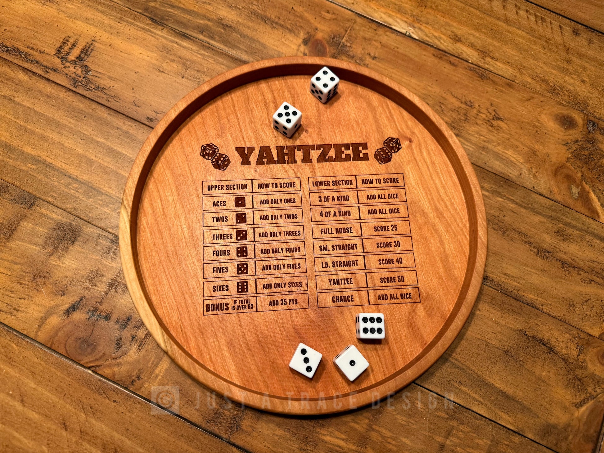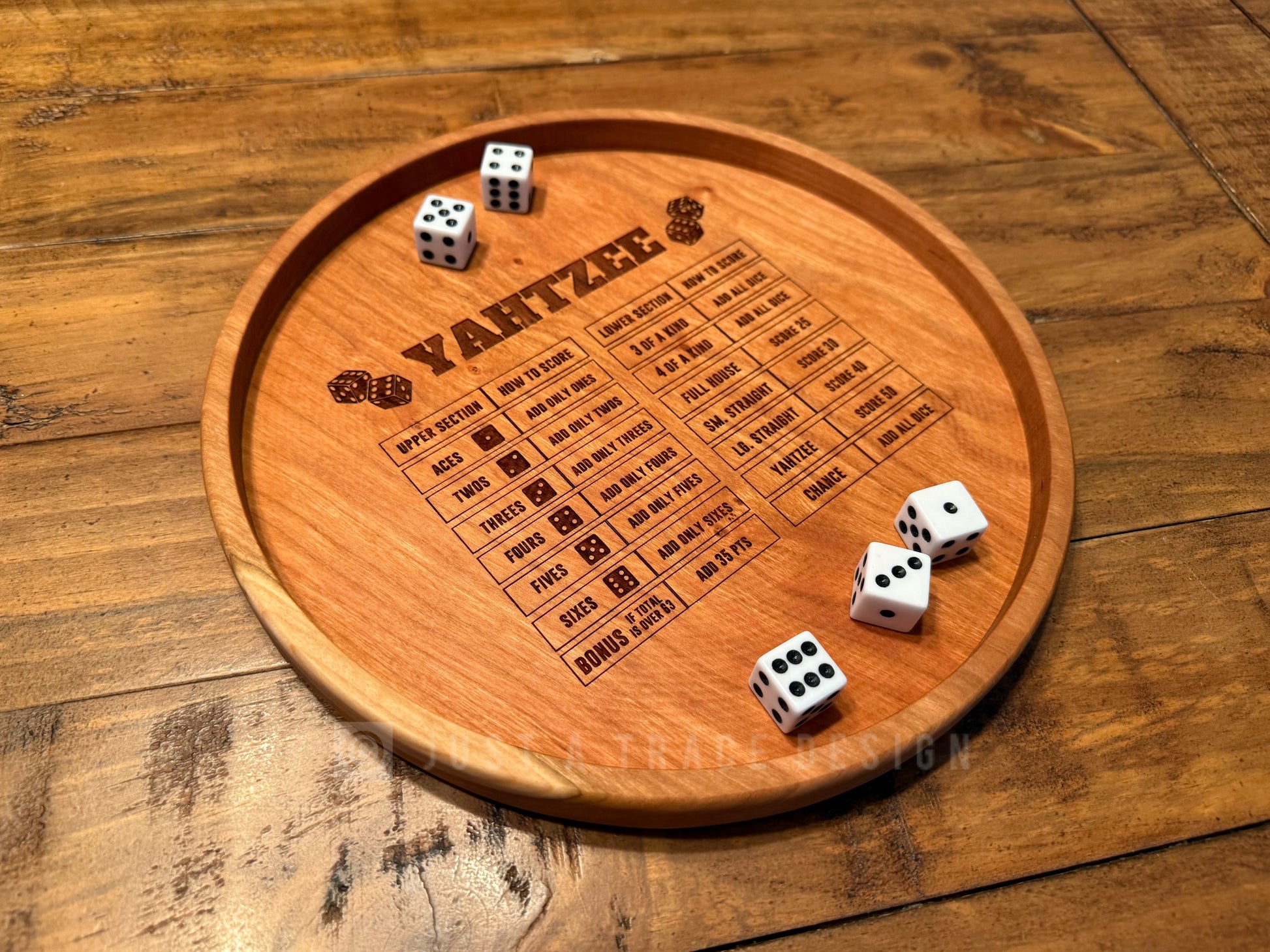 Enhance your game nights with this beautifully handcrafted 10” Cherry Wooden Yahtzee Tray!