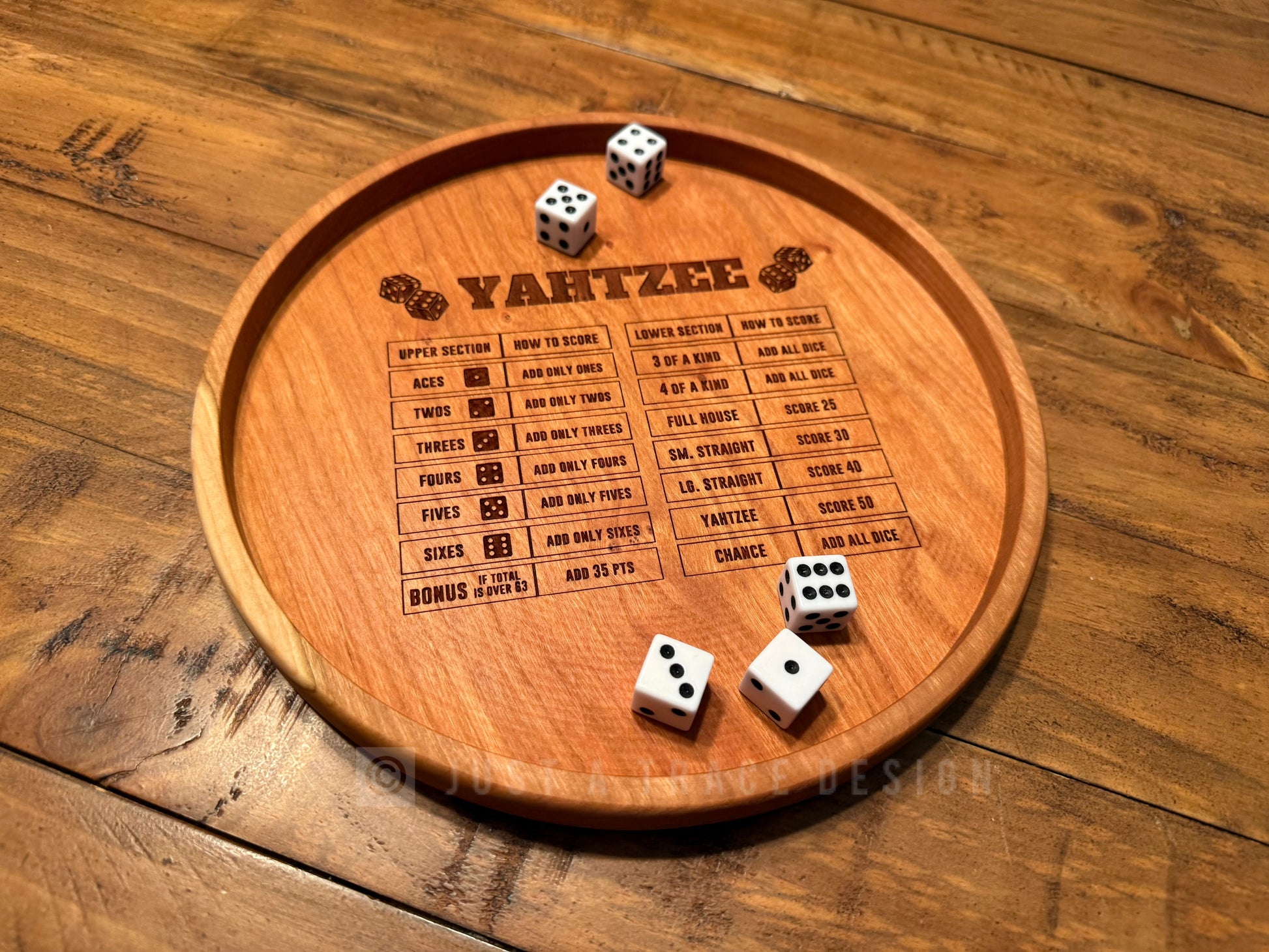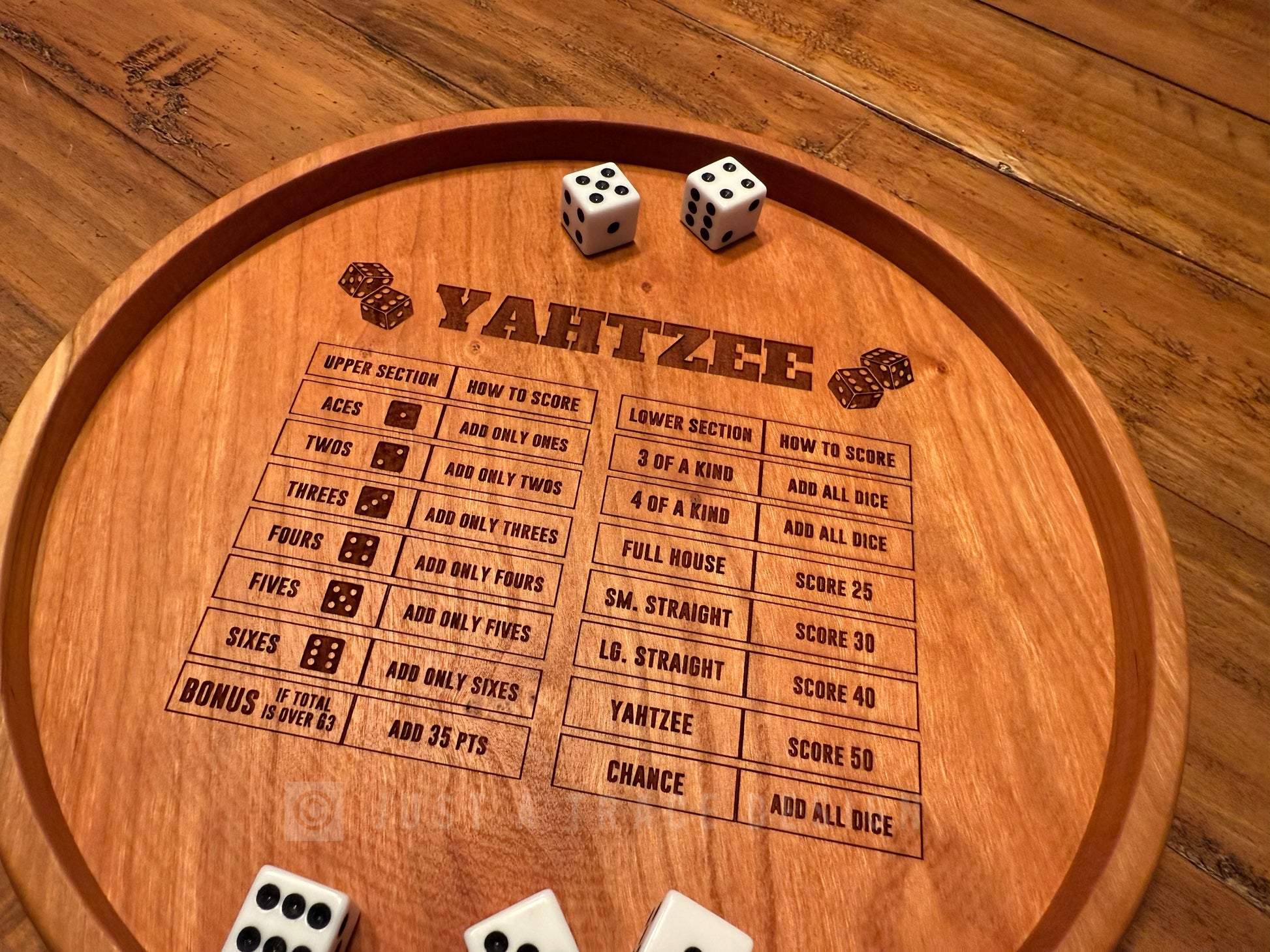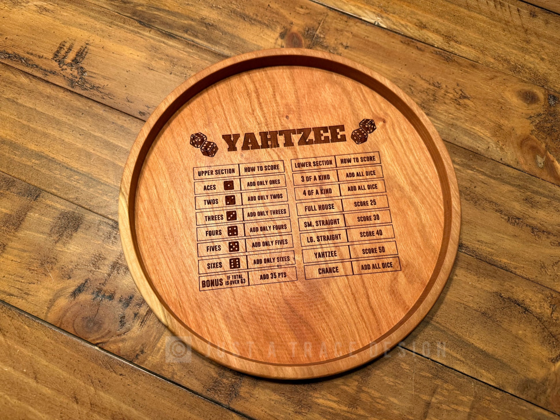 10" Yahtzee Dice Tray, Dice Game, Board Game, Cherry Hardwood Rolling Tray, Portable Game Tray, Scoring Guide, Family Game Night, Dice Tray