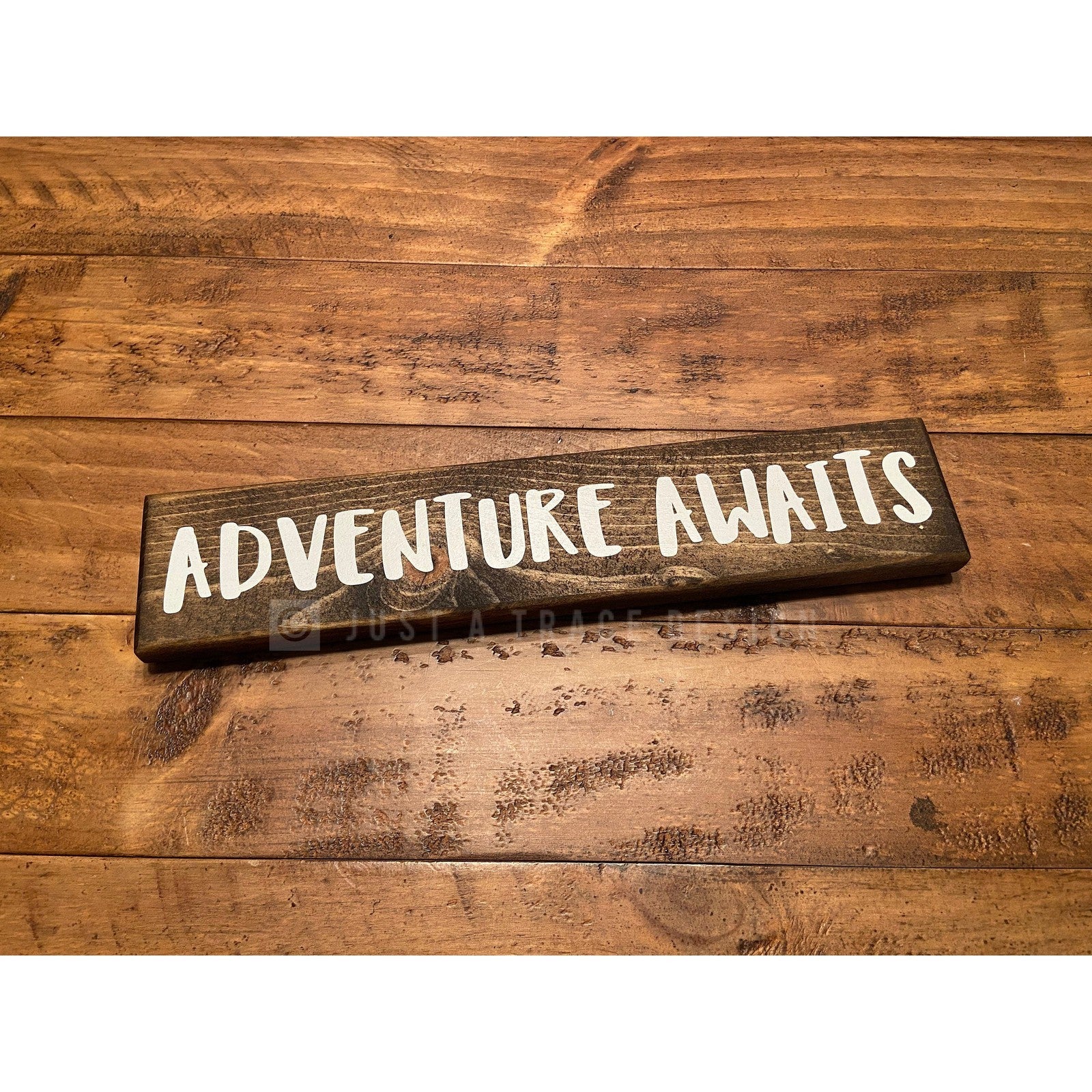 Adventure Awaits Wooden Sign, Wanderlust, Outdoor Journey, Desk Decor, Home Decor, Shelf Sitter Sign, 12" x 2.25"