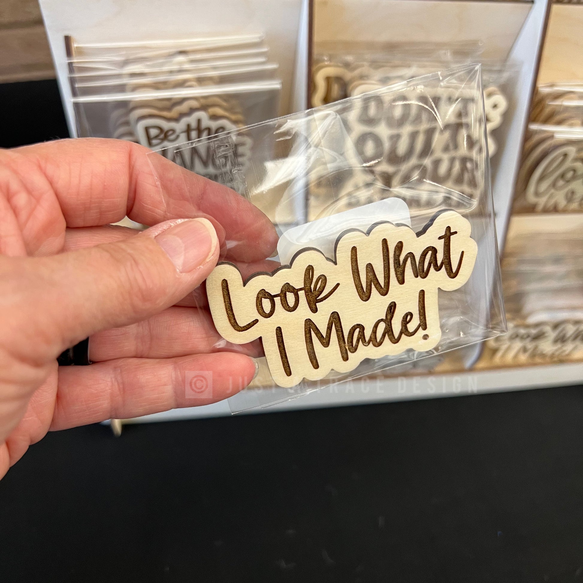 Introducing our Look What I Made Wood Magnet! This little guy is here to bring some serious style and positive vibes to your fridge, magnetic board, or any magnetic surface you can think of.