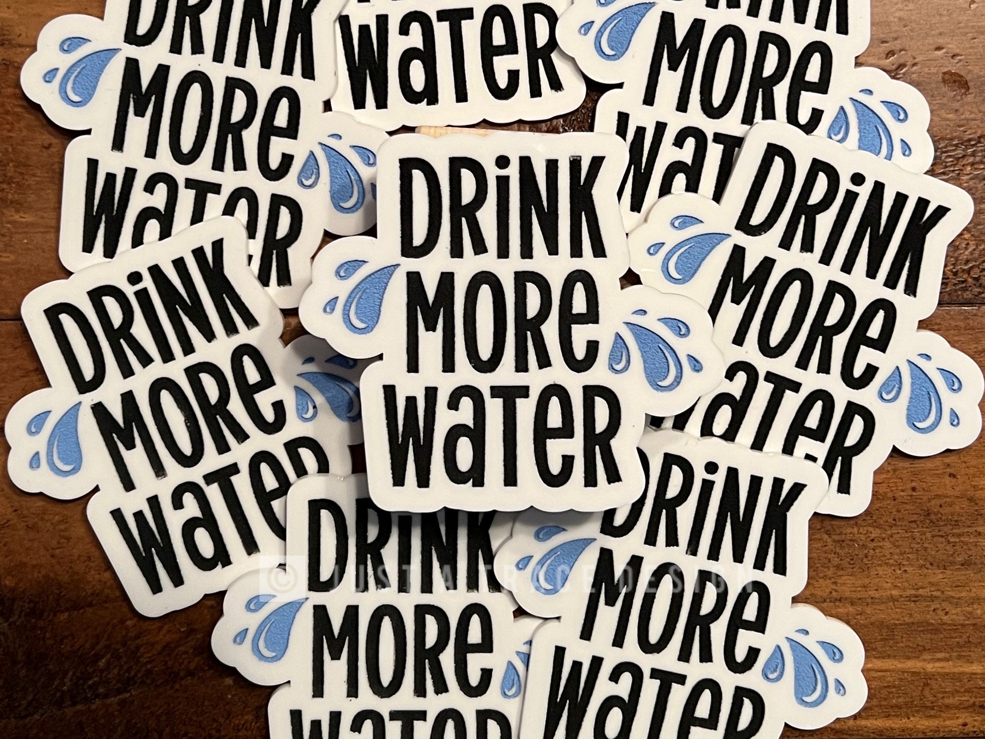 Our Drink More Water Acrylic Magnet. This funky little magnet is here to remind you to stay hydrated and keep sippin' that H2O all day long.