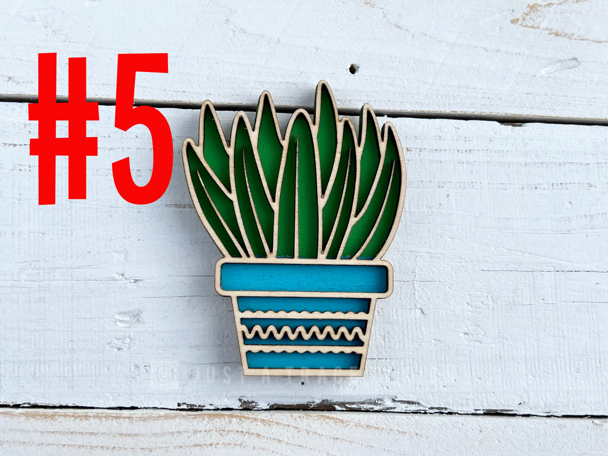 Available in your choice of cactus. Made with 2 layers of Laser cut 1/8 inch plywood and hand painted.