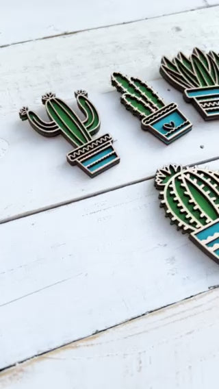 Our wooden Southwestern Cactus Magnets add a stylish flair to any kitchen!