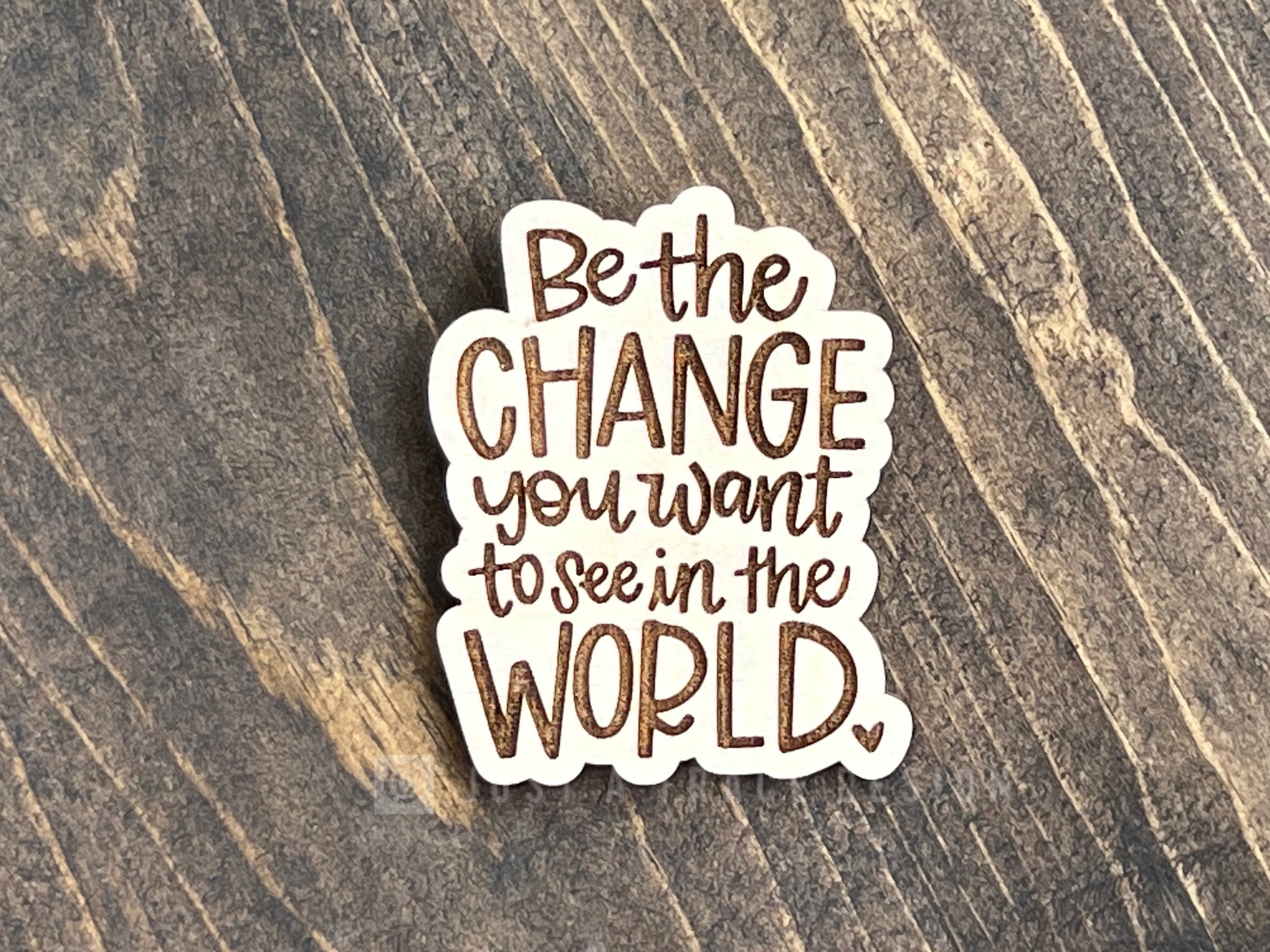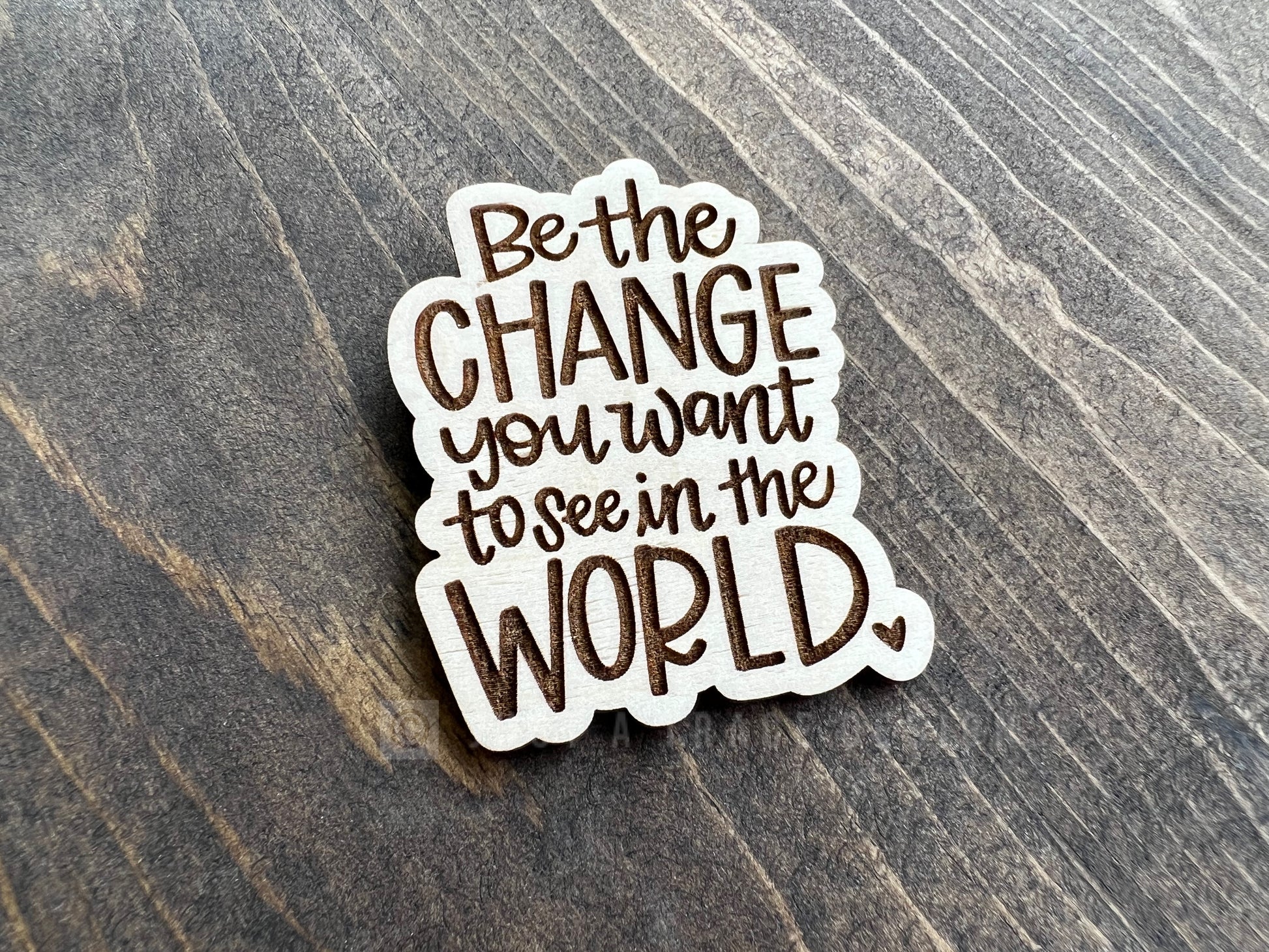 Introducing our Be The Change You Want To See In The World Wood Magnet! This little guy is here to bring some serious style and positive vibes to your fridge, magnetic board, or any magnetic surface you can think of.