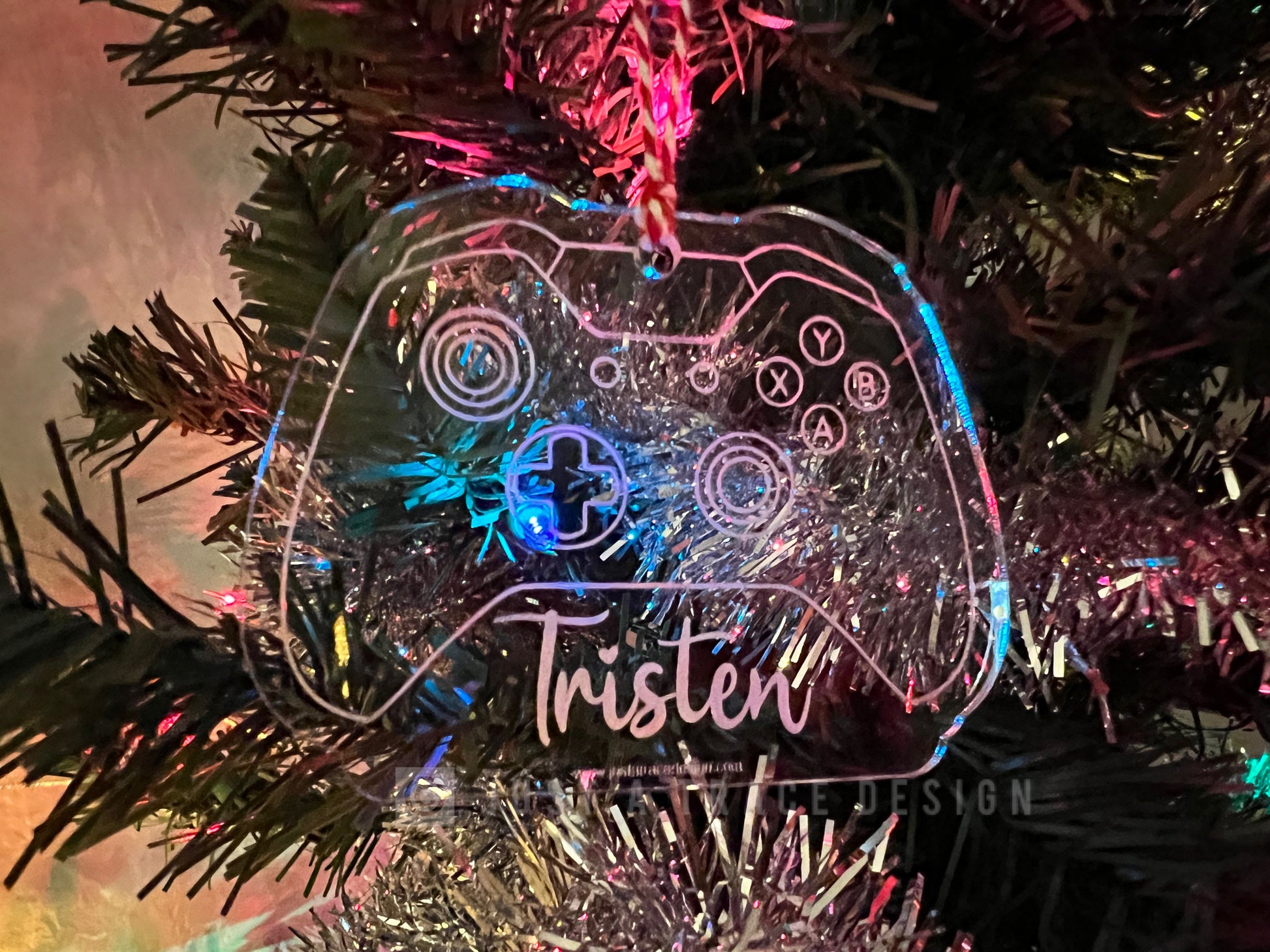 Personalize this Acrylic Gamer Controller ornament with any name or gamer tag to create a unique and festive addition to your Christmas tree!