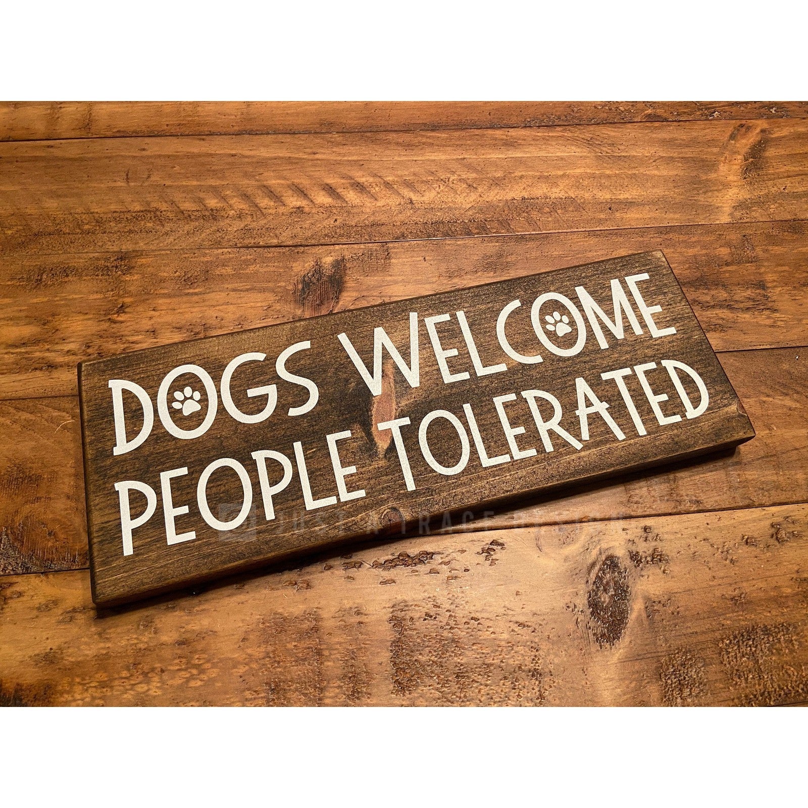 Dogs Welcome - People Tolerated - Dog Sign - Dog Lover - Funny Wood Sign - Pet Decor - Wooden Sign - Pet Owner Gift - Welcome Sign