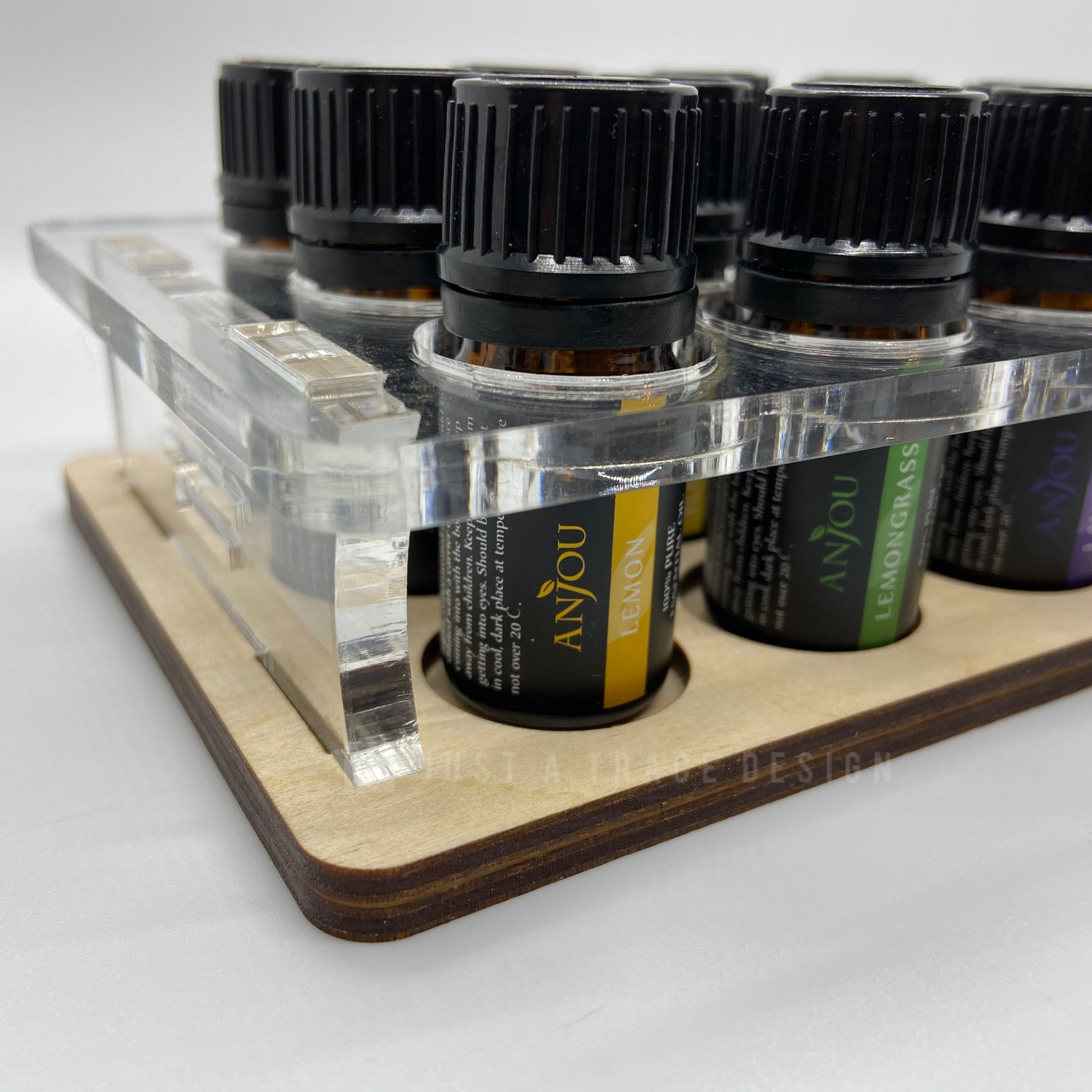 Essential Oils Holder, Acrylic & Wood Holder, Oil Organizer, Table Top, 12 Bottle Holder, Storage Display For Essential Oils, 5ml Bottle