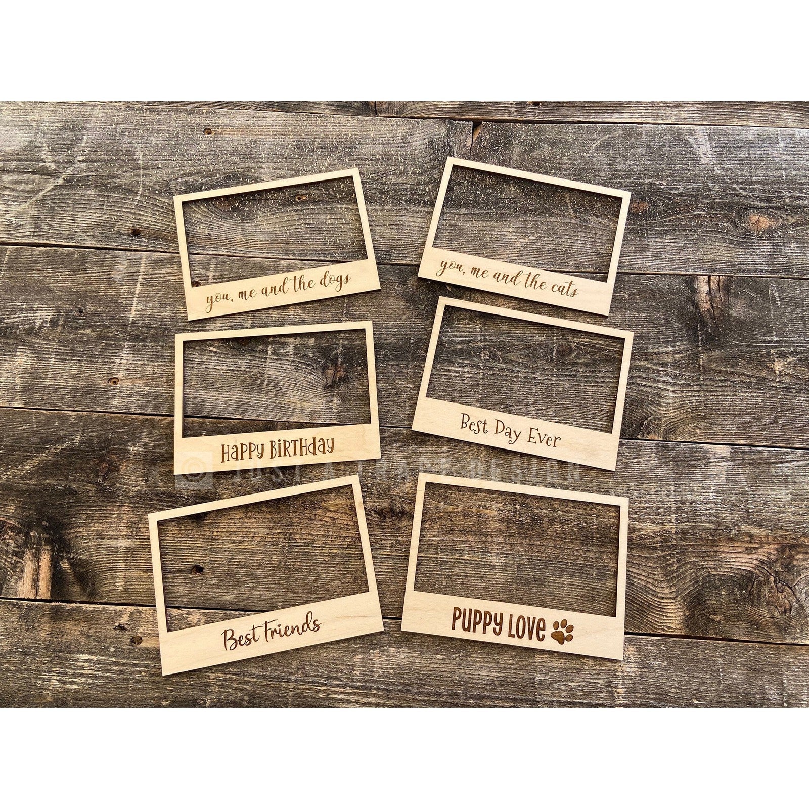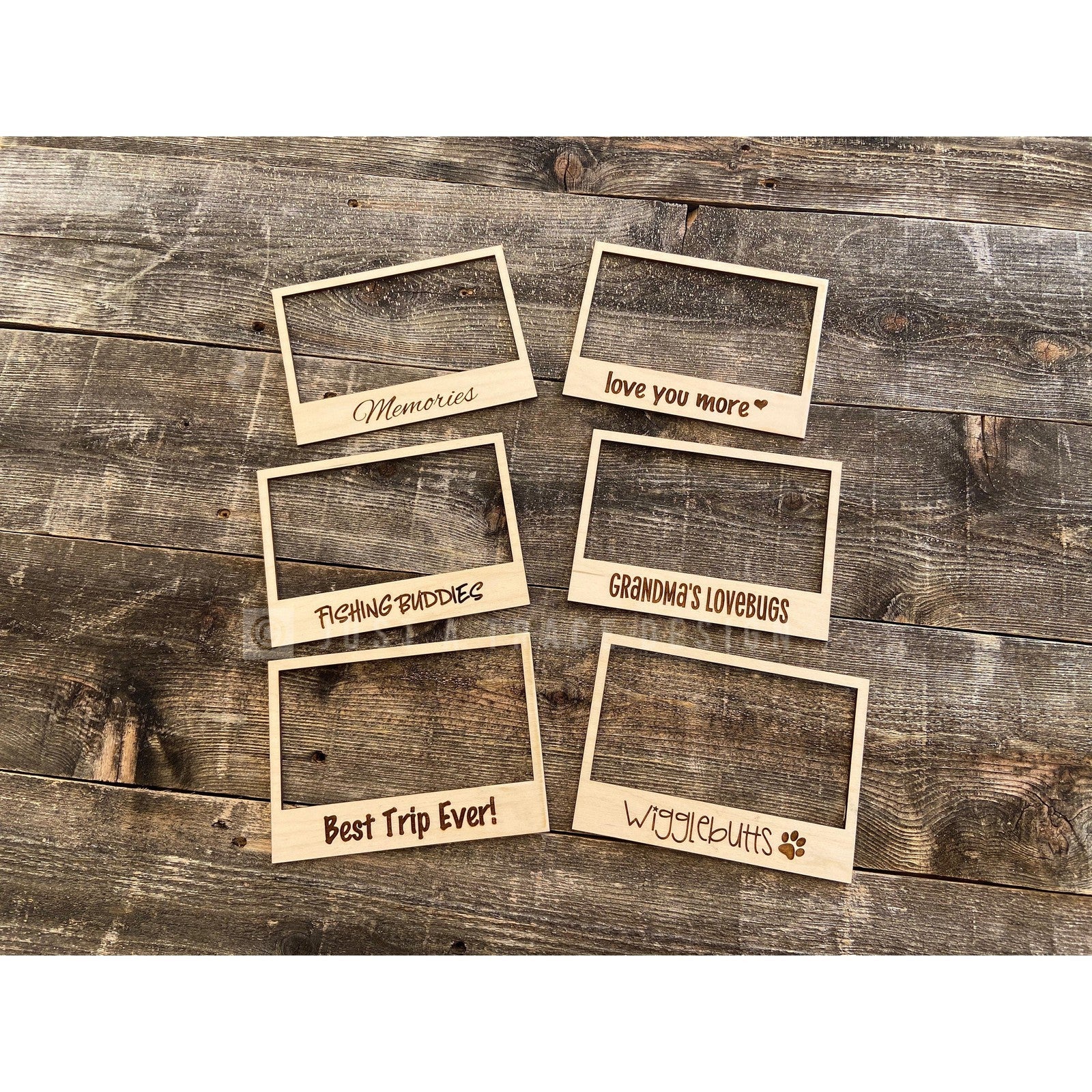 Select your choice of saying. Each frame is laser cut and engraved from Baltic Birch wood. Perfect for displaying your photos on any fridge, magnet board or any metal surface.