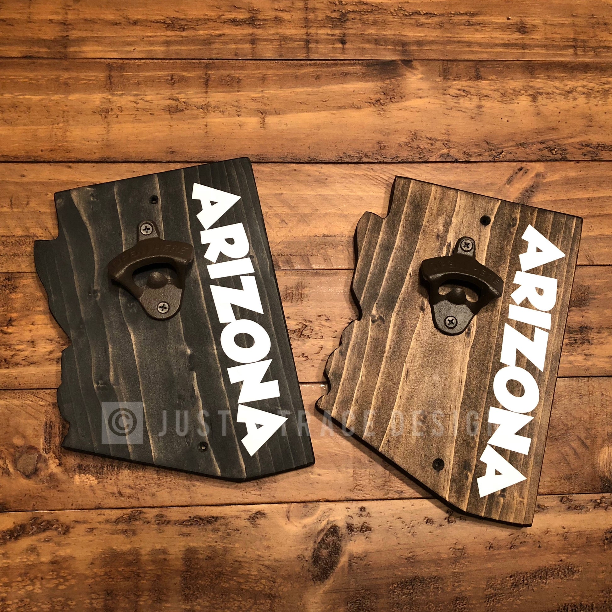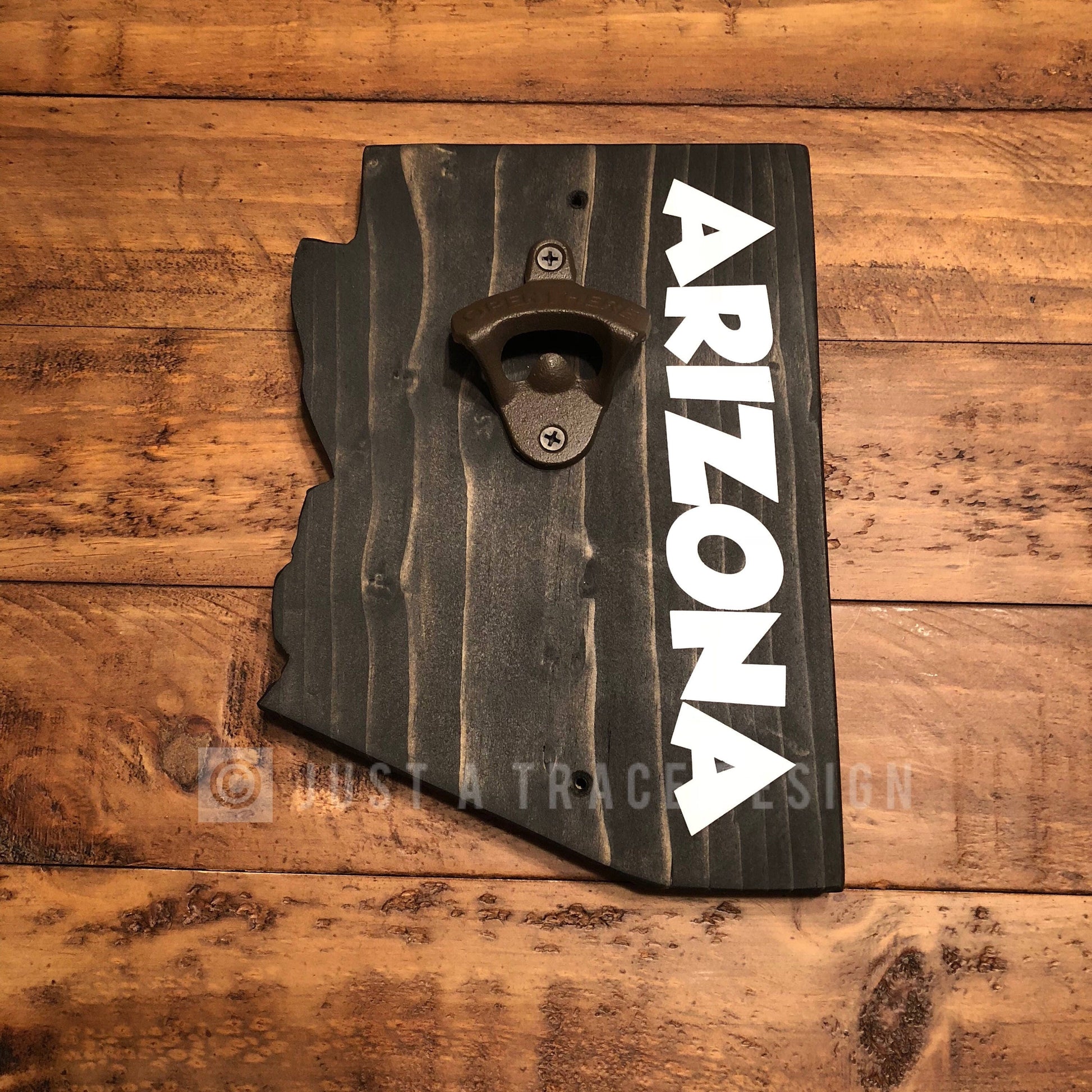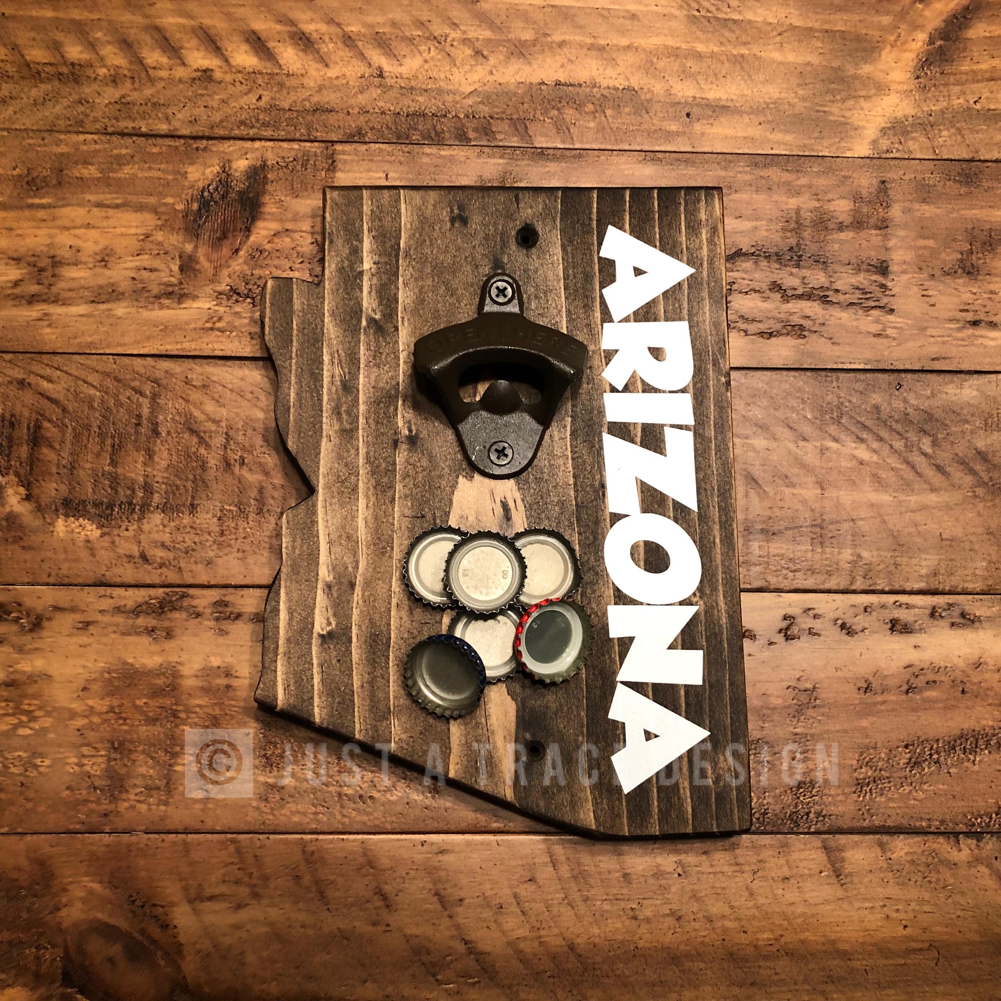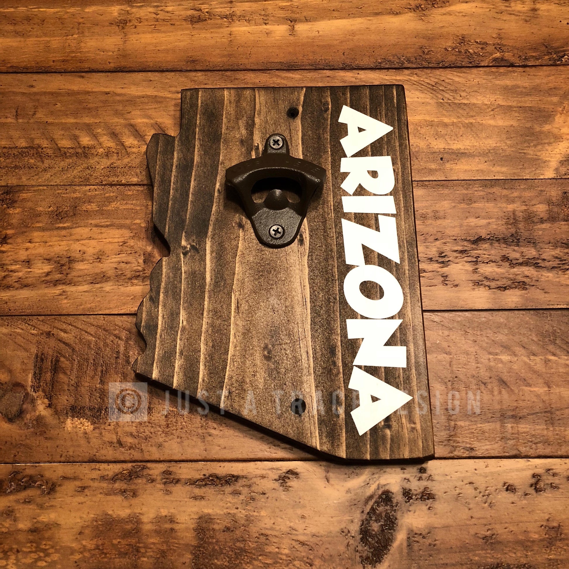 Magnetic Arizona State Shaped Bottle Opener - Wood Sign - Wall Decor - Groomsmen - Man Cave - Wall Mounted Bottle Opener