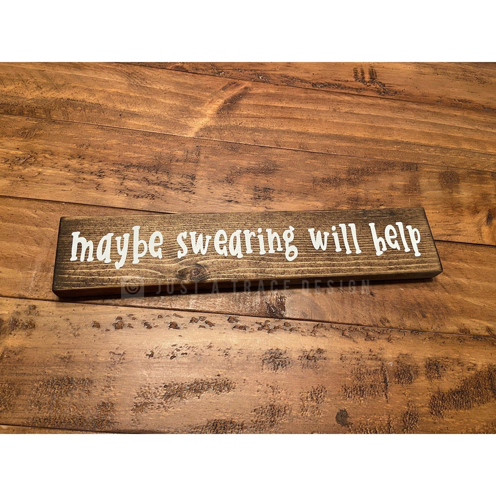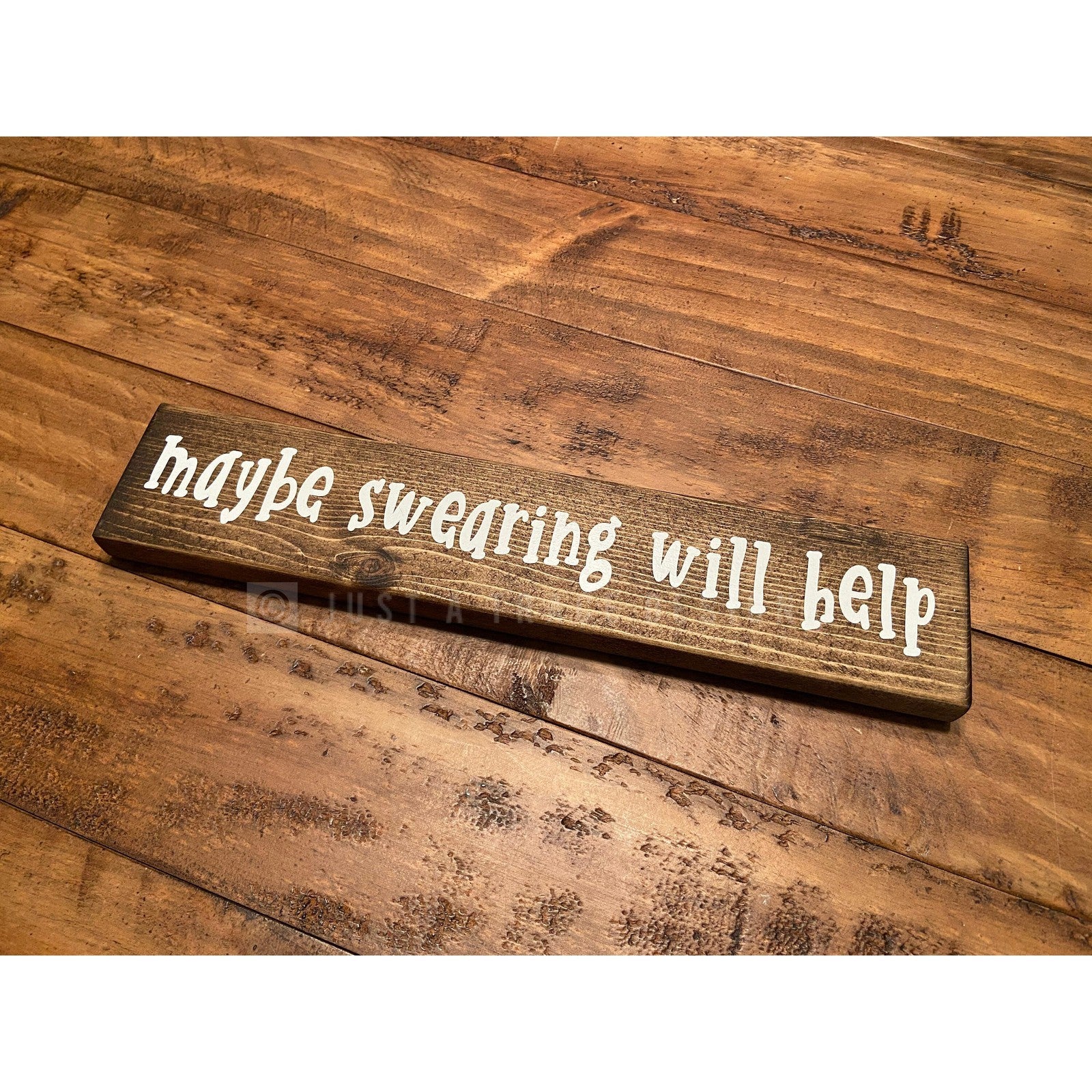 Maybe Swearing Will Help Sign | Wooden Sign | Funny | Home Decor | Shelf Sitter | 12" x 2.25"
