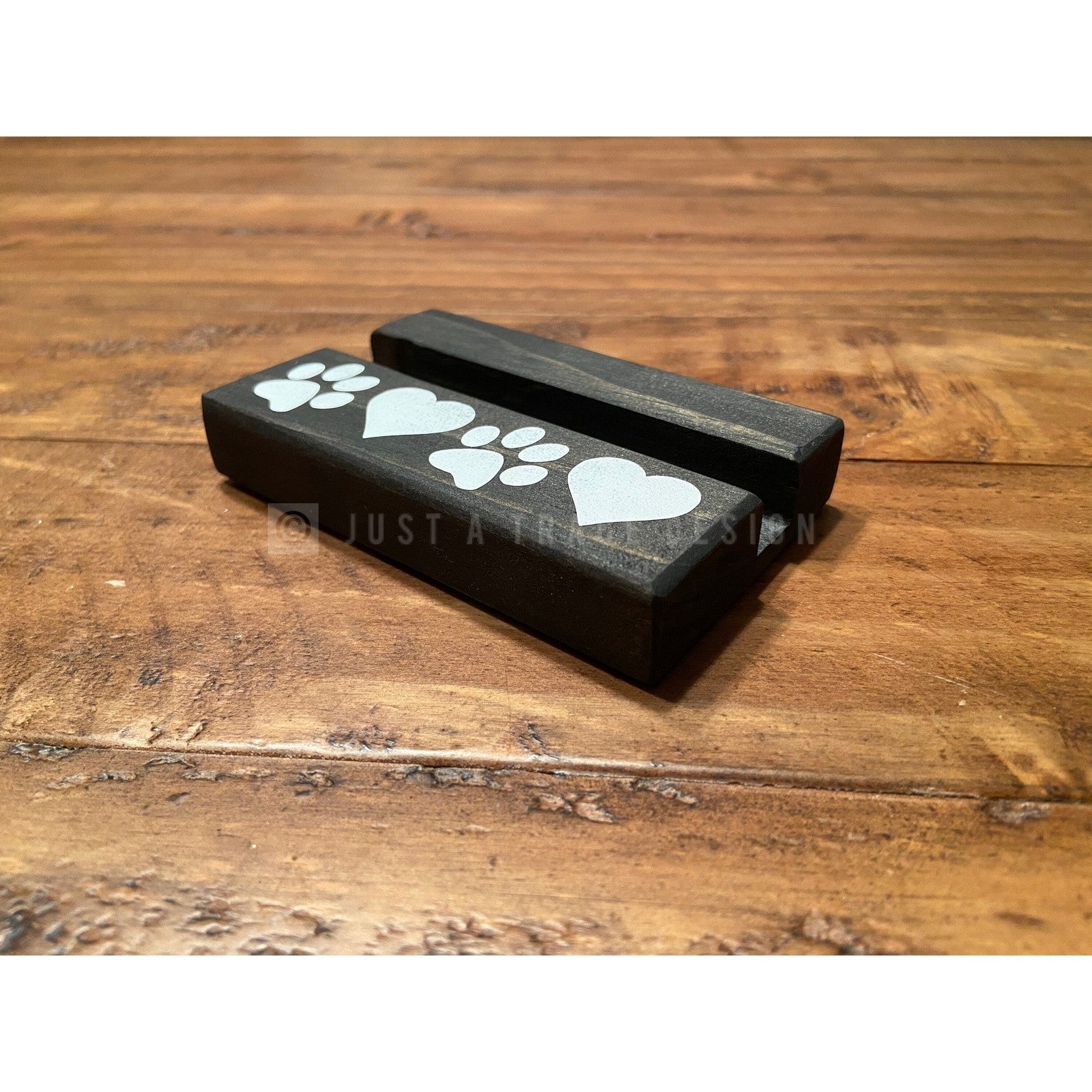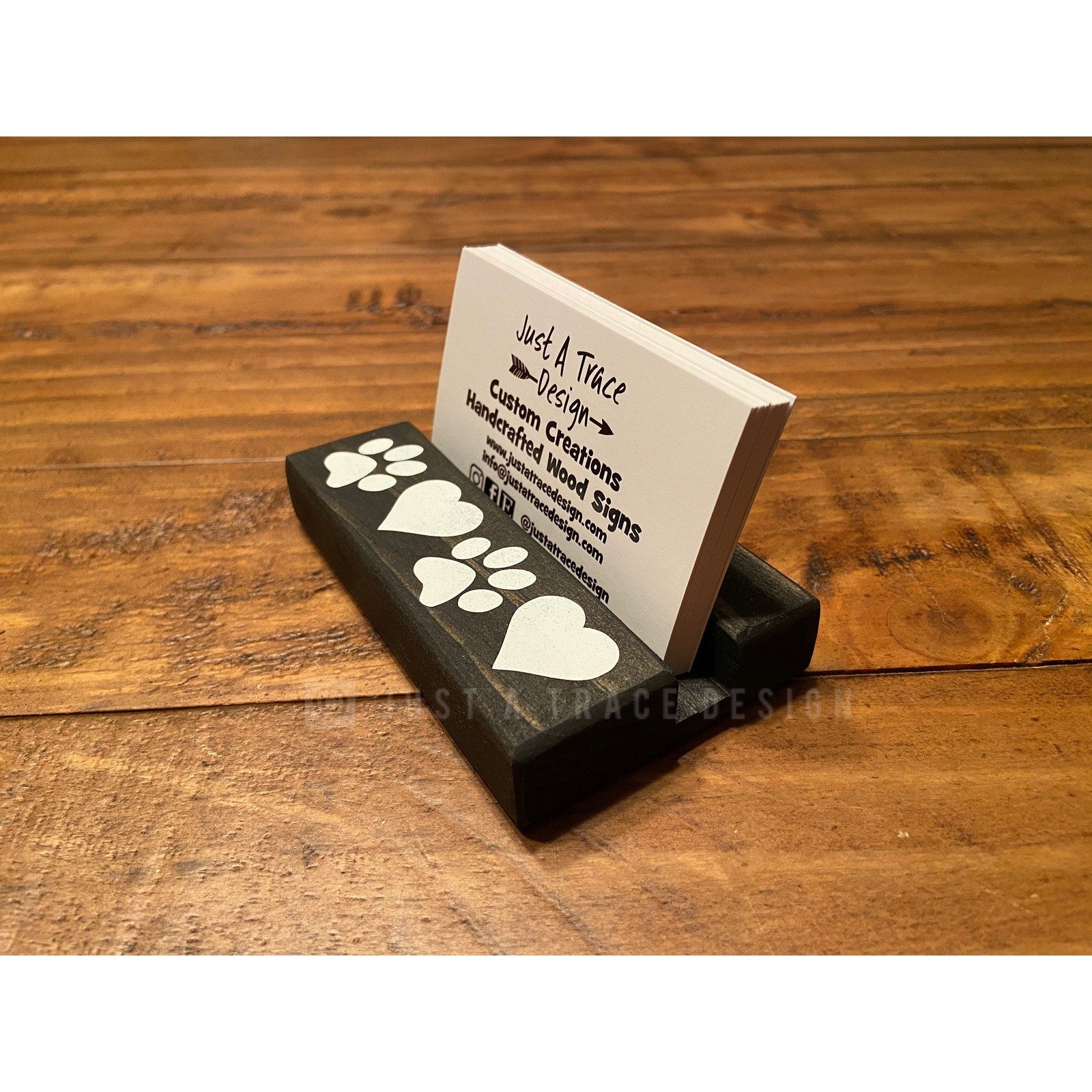 This Paw & Heart Paw Prints wood business card holder is a perfect way to display your business cards.