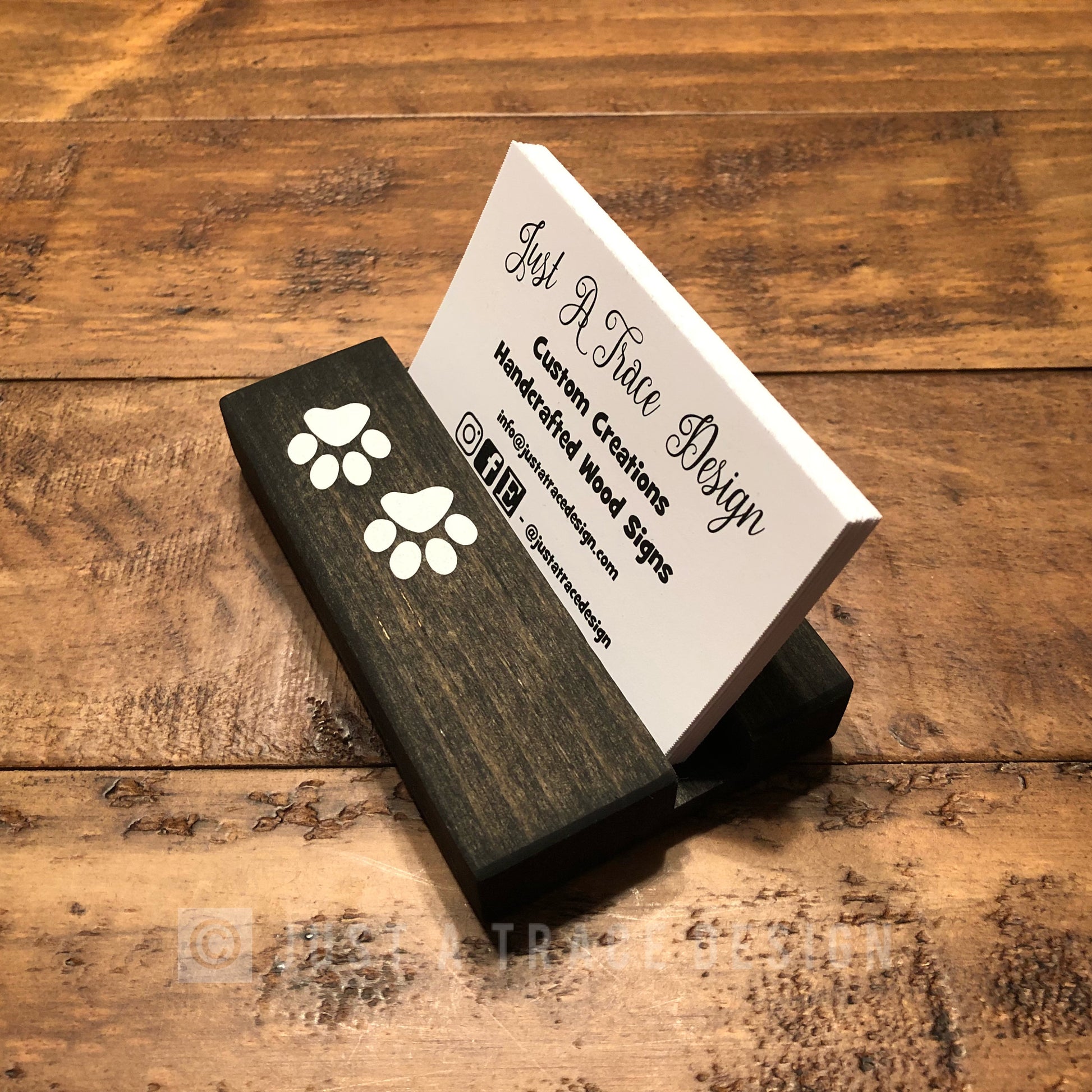 This Paw Prints wood business card holder is a perfect way to display your business cards.