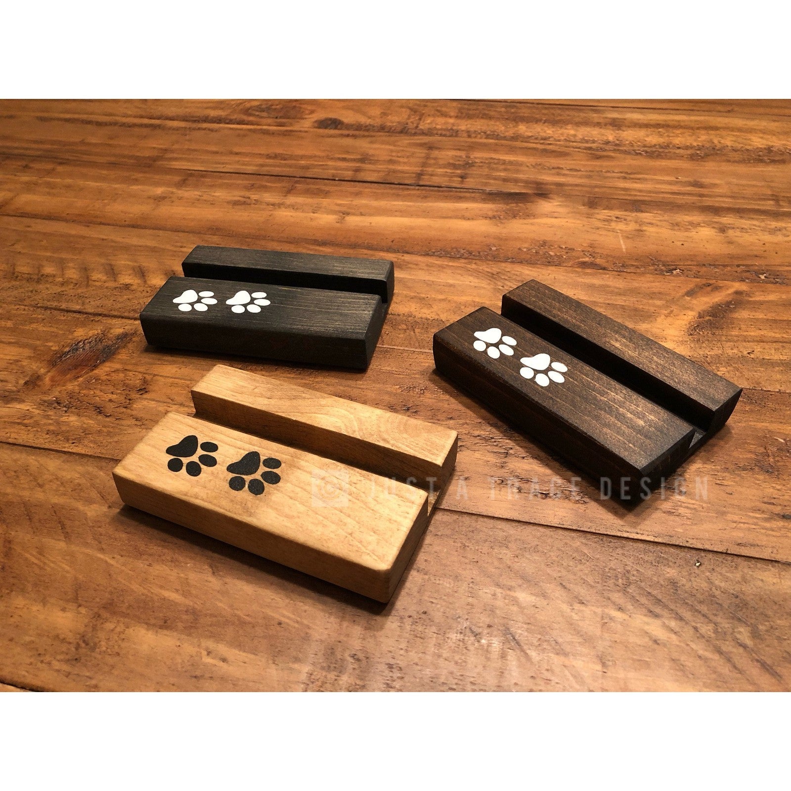 Paw Prints Wood Business Card Holder - Business Cards - Desk Accessory - Business Gift - Dog Paw Print - Pet