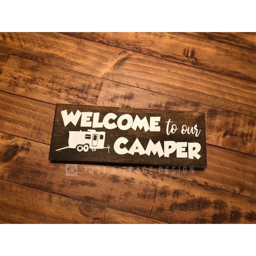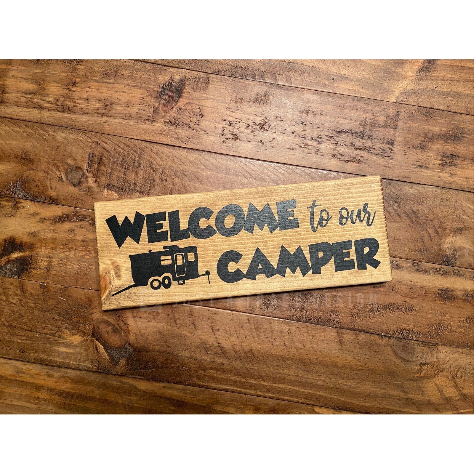 Welcome To Our Camper Sign - Wooden Sign - Wall Decor - Home Decor - Camper - Camping - Outdoors - 12" x 4.25"