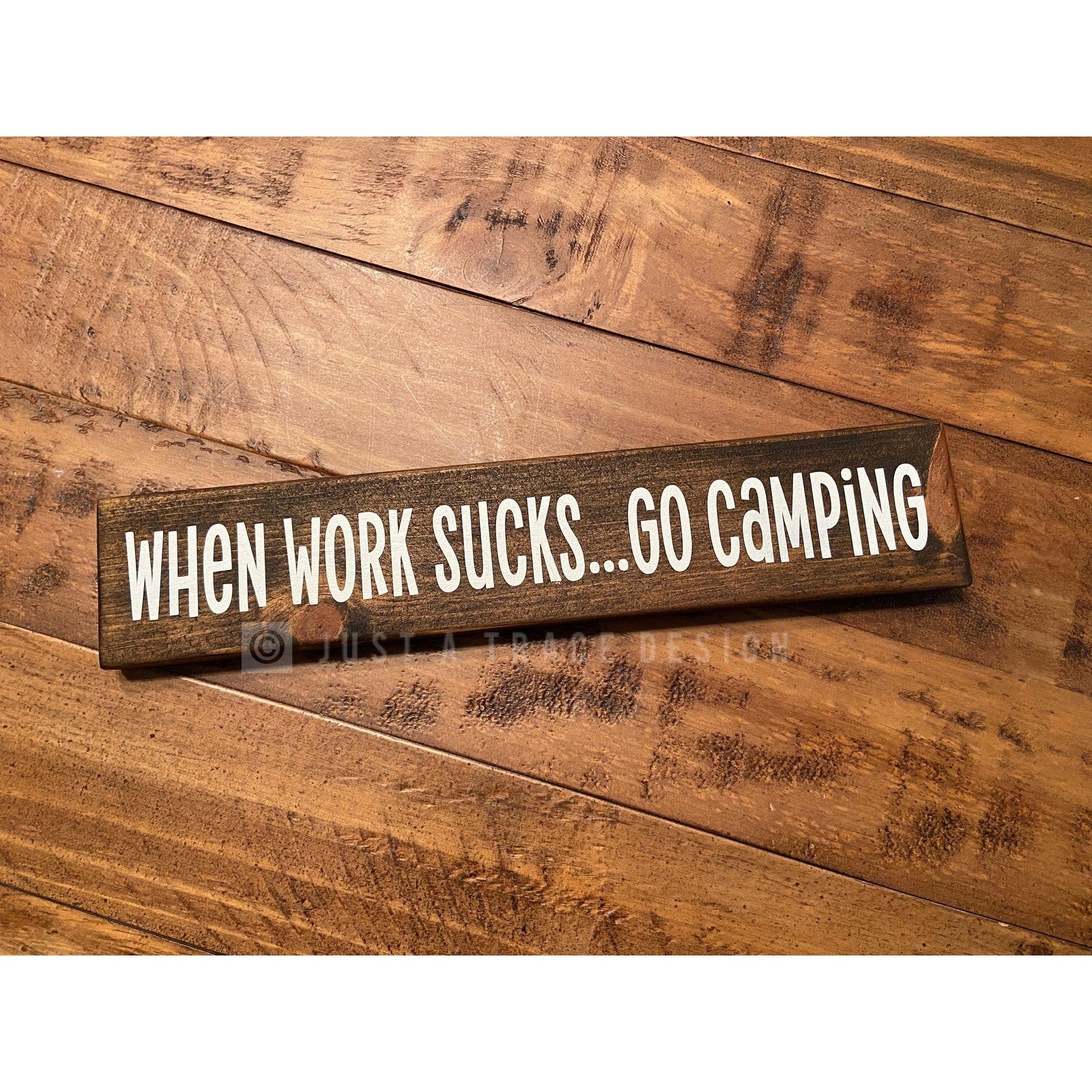 When Work Sucks...Go Camping Sign - Wood Sign - Wall Decor - Home Decor - RV - Camper - Camping - Outdoors - 12" x 2.25”