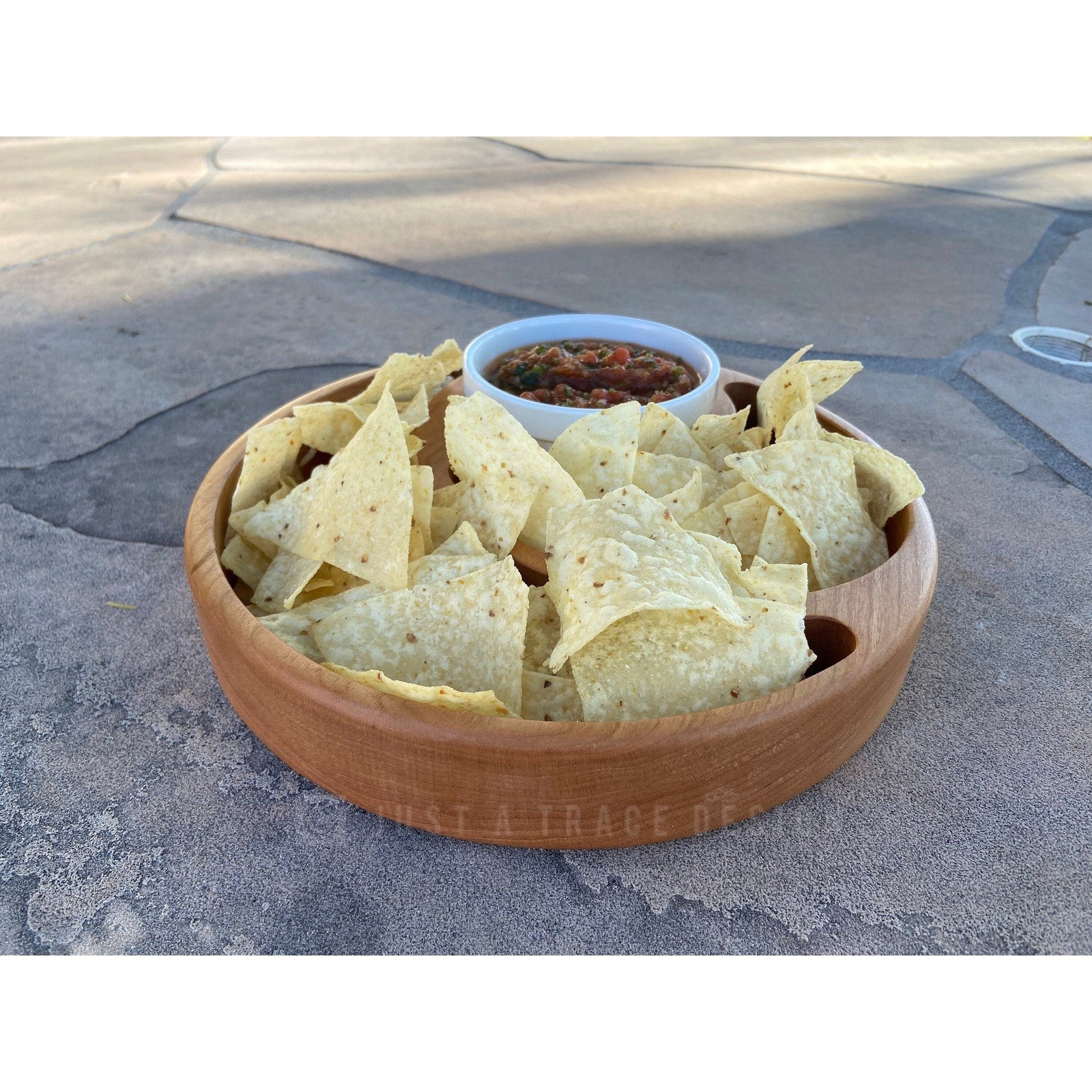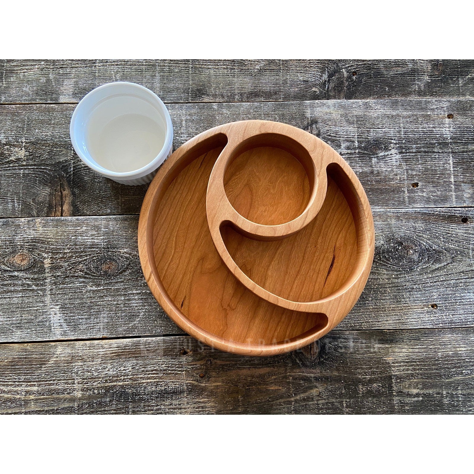 Wooden Chip & Dip Snack Tray, Chip Tray, Cracker Holder, Appetizer Tray, Wood Platter, Serving Tray, Ramekin Dish